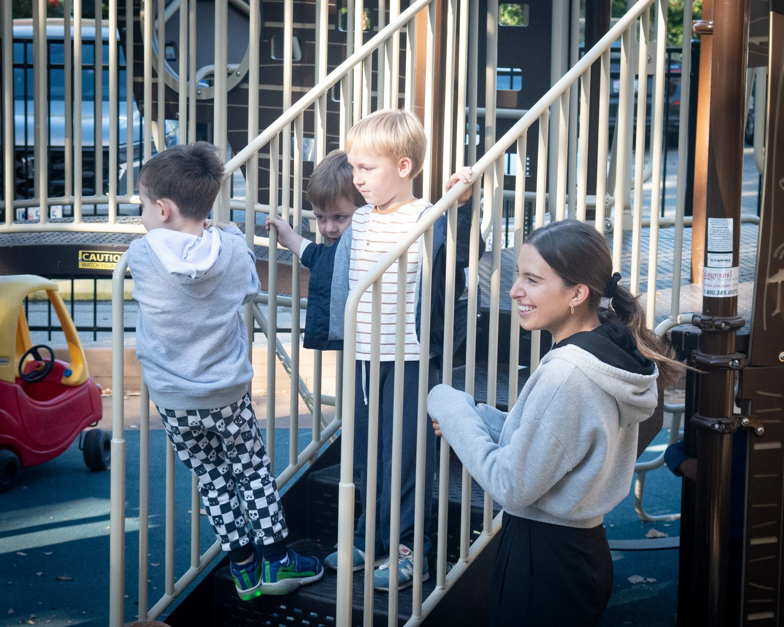 Little bodies need plenty of opportunities to develop and strengthen their gross motor skills. At our school, children begin their day on the playground and enjoy afternoon recess, giving them ample time to run, jump, and play with friends. They love digging in the sandbox, riding motor toys, and climbing on the jungle gym. These daily experiences not only support healthy physical development but also encourage social skills, confidence, and a love of active play.